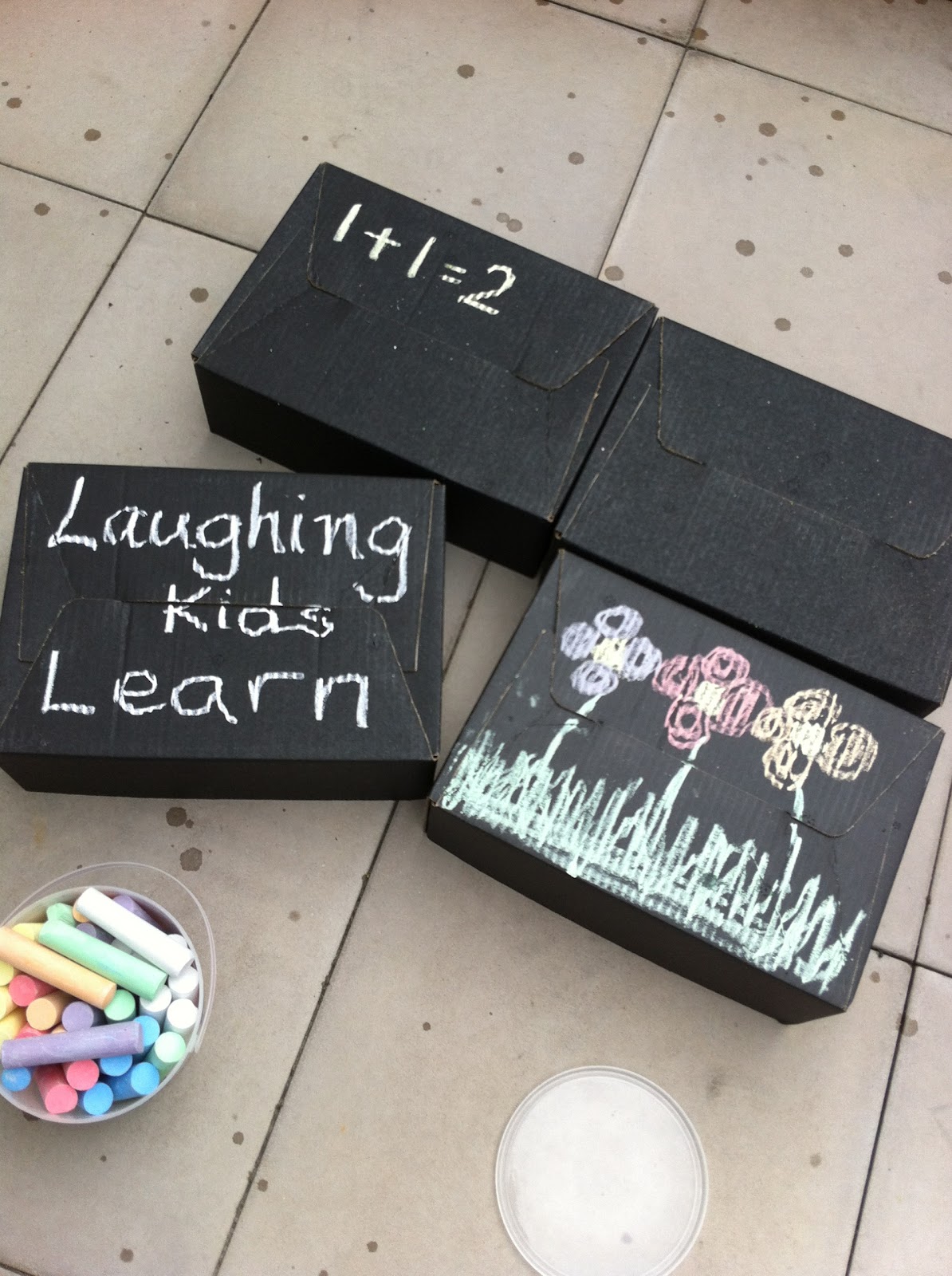 Here I have used black cardboard boxes but regular brown boxes are good to use too.
