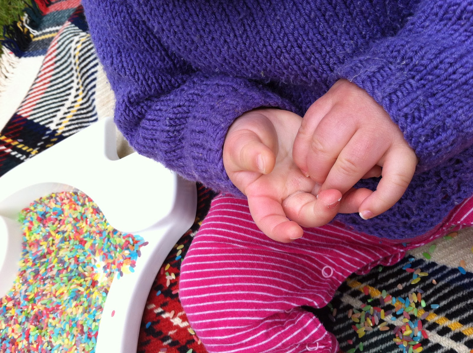 Surprisingly Possum didn’t one put try to put it in my mouth. She seemed to really enjoy looking at the colours and picking the bits of rice from between her fingers. Bliss.