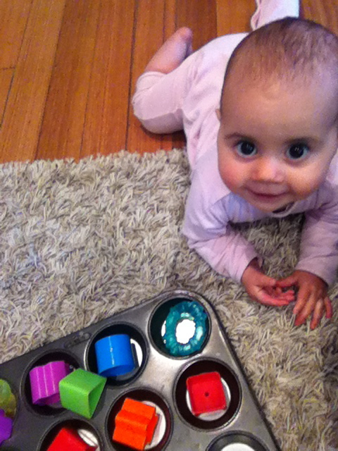 Great idea, I’ve never given a muffin tin to a baby but I will now! Thanks for the inspiration. I love your daughter’s eyes in the photo when she gets the tin!