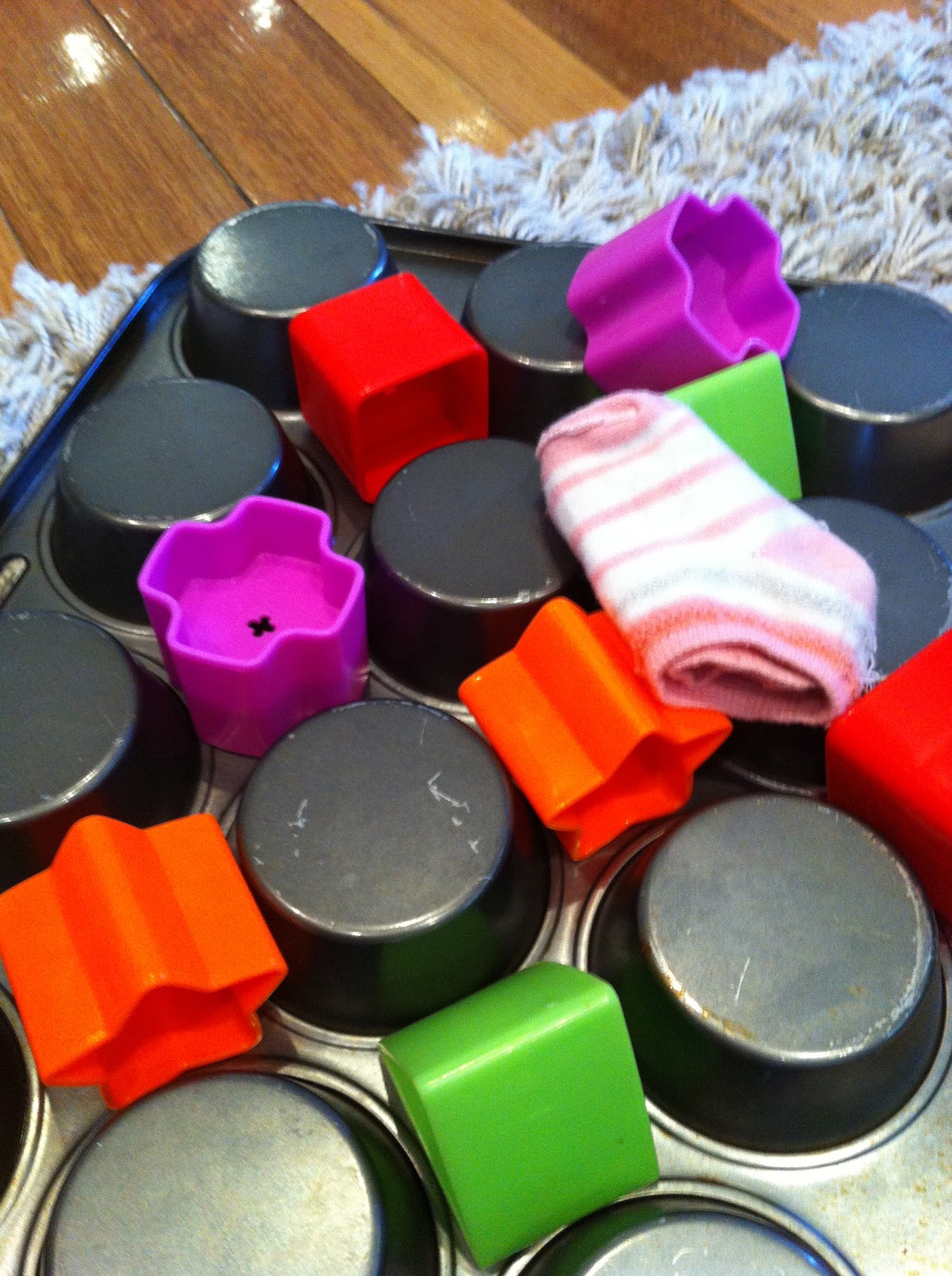 I also watched her remove all the objects but start moving some of them from one cupcake ‘hole’ to another. She did this for several minutes.
